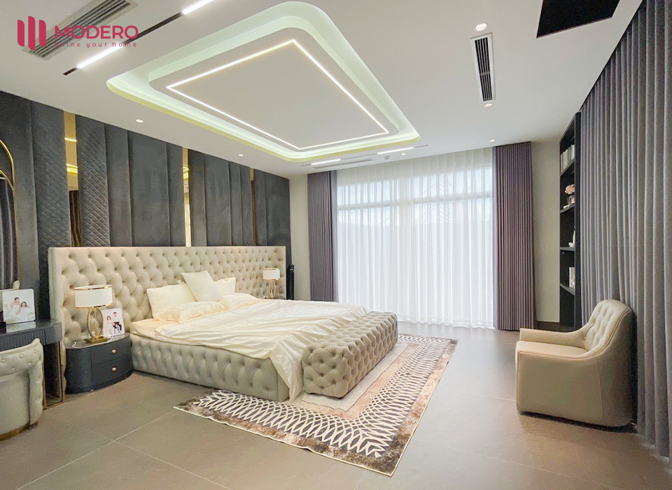 Tại công trình biệt thự lần này, rèm vải MODERO tông xám lạnh đã đồng hành cùng gia chủ từ phòng khách, phòng ngủ master đến không gian sinh hoạt riêng tư, trở thành lớp nền hoàn hảo để tôn lên từng đường nét kiến trúc và nội thất mang hơi thở đương đại.